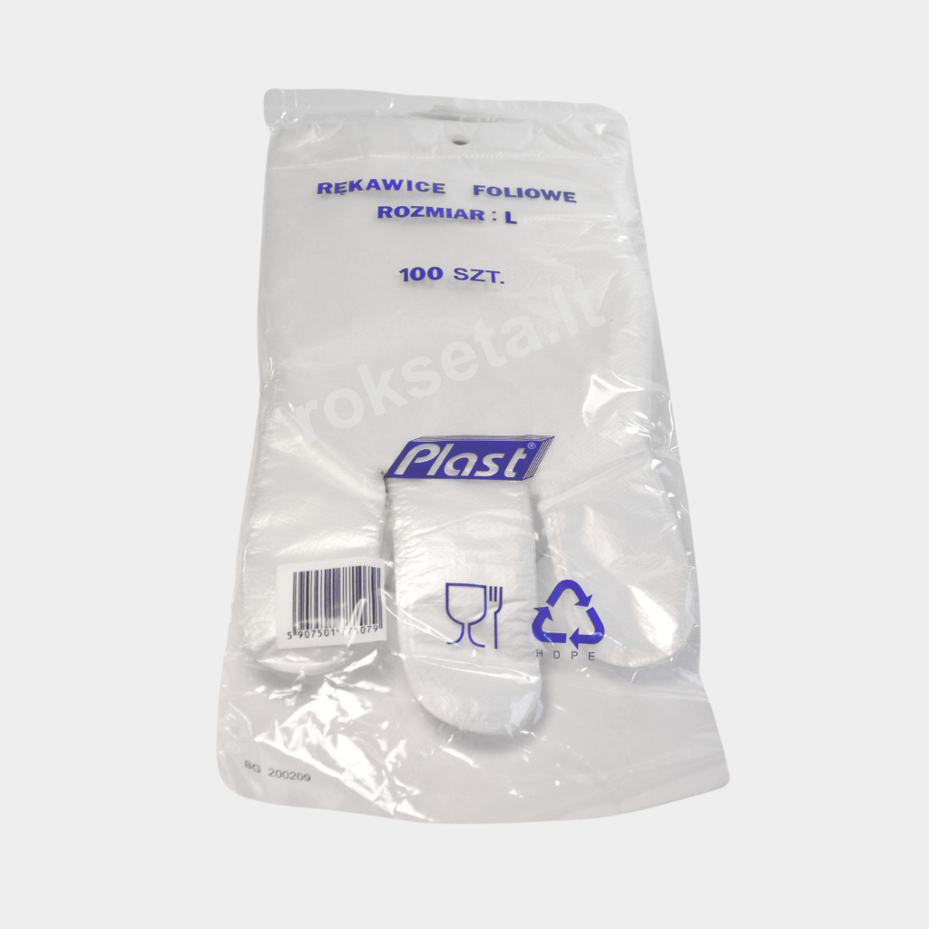 Prekė: Vienkartinės plastikinės pirštinės 100 vnt., dydis L